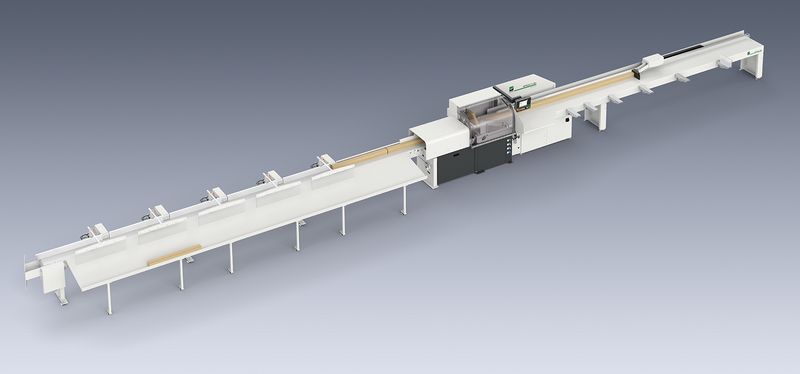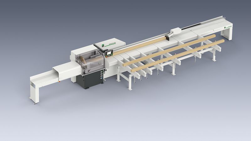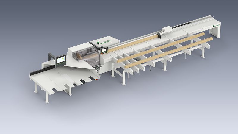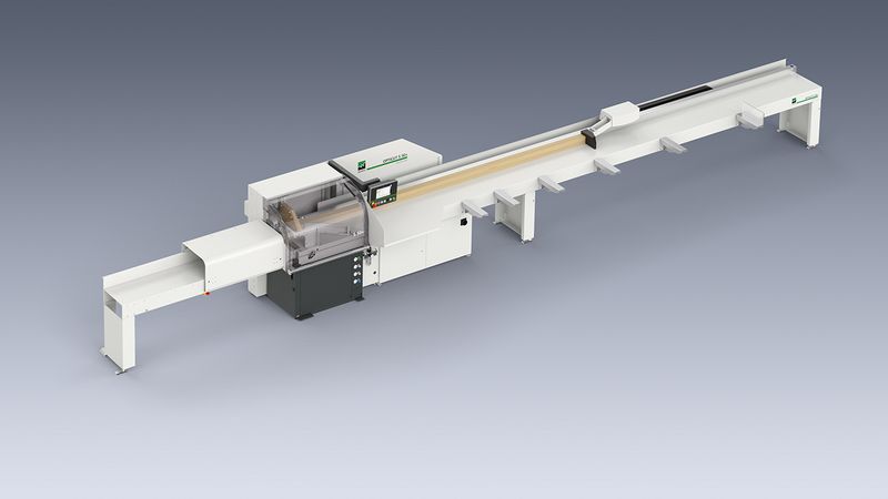 A vágás utáni keresztkitolóval ellátott gépkonfiguráció lehetővé teszi a fa teljes keresztmetszetének felhasználását, az alapváltozatban akár 300 x 100 mm-es méretig. A hulladék részek gyors és egyszerű szétválasztása érdekében lehetőség van az alkatrészek biztonságos kidobására a hulladékcsúszdán vagy hulladékcsapdán keresztül. Az innovatív munkadarab-rögzítésnek köszönhetően az adott darabok levágása mindig precízen, nagy szögpontossággal történik. - Jövőorientált biztonsági berendezés