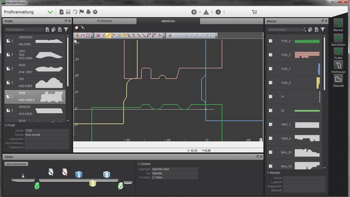 A Moulder Master összekapcsolja a gyártás előtti folyamatokat, és a megfelelő információkat továbbítja az élezőműhelyben és a gyártásban a következő munkaállomásokra. Ezáltal a hibák minimalizálódnak, a folyamat megbízhatósága növekszik, és garantált a termékek egyenletesen magas minősége. A Moulder Master így támogatja a hatékony és gazdaságos gyártást a profilozógéppel.
